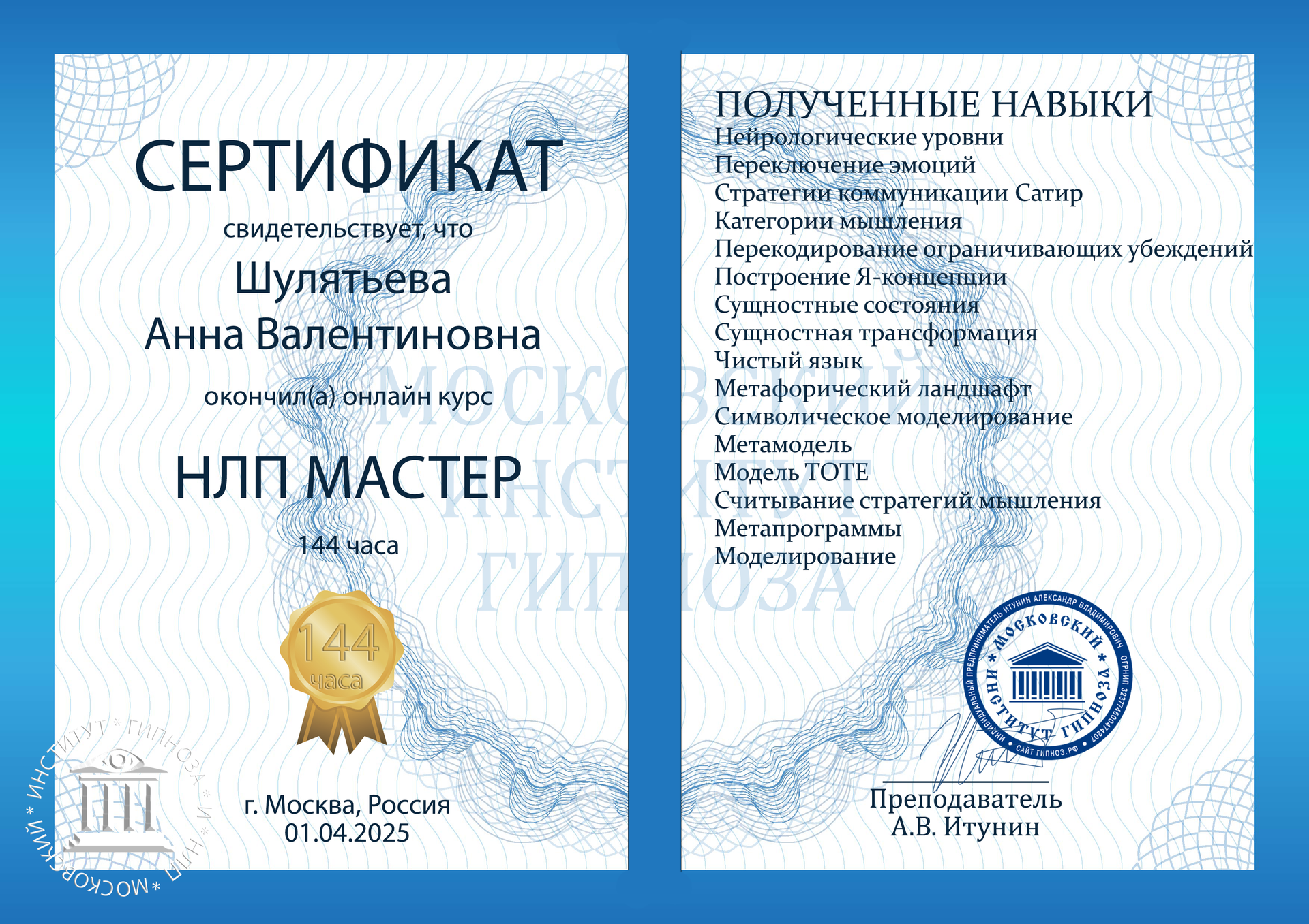 Образование. Профессиональный фотограф и психолог Шулятьева Анна в Котласе и Москве